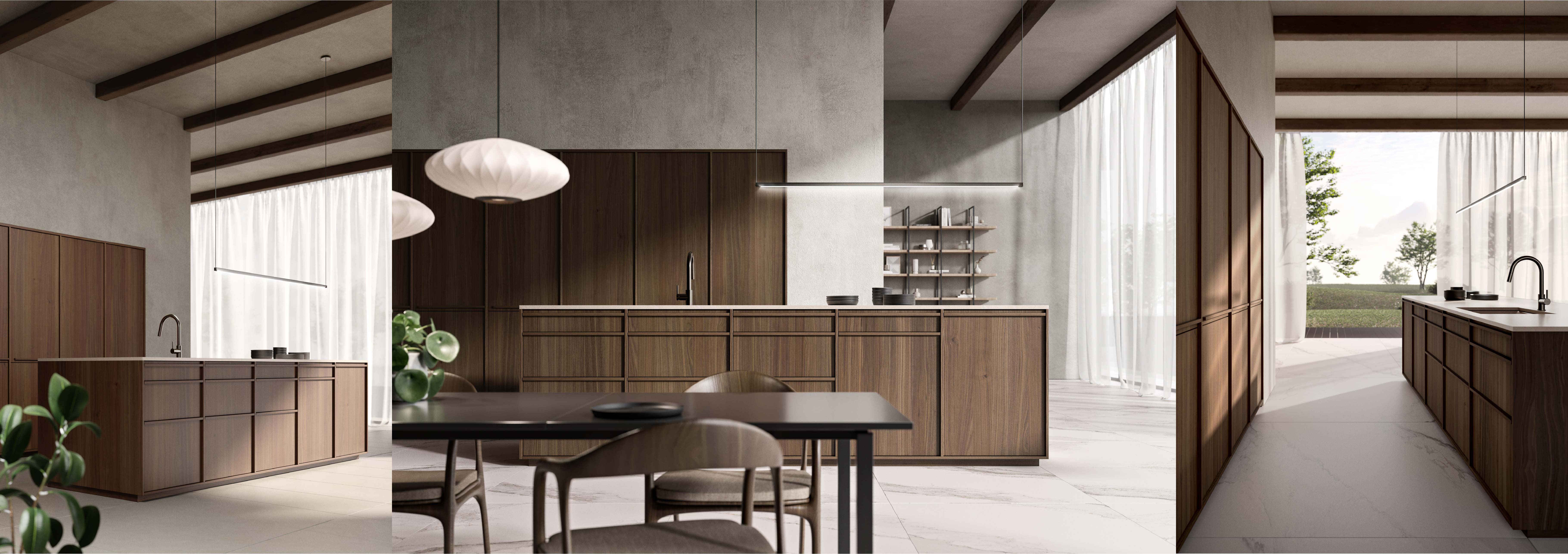 מטבח מעץ אגוז בהשראת החושניות המאפיינת את התרבות היפנית.