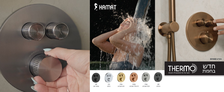 מערכת ה-THERMO של חמת נולדה בדיוק מתוך המקום הזה. מערכת תרמוסטטית חכמה, ששומרת על טמפרטורה קבועה ויציבה לאורך זמן, ומונעת שינויים לא צפויים בזרימה - כך שכל חוויית רחצה הופכת מדויקת, אחידה ונעימה יותר. היכולת לקבוע מראש את הטמפרטורה הרצויה, לבחור בין מצבי זרימה שונים, ולשלוט בכל רגע - מבלי לכוון מחדש, מייצרת תחושת ביטחון ונוחות שמתורגמת לשגרה יומיומית.